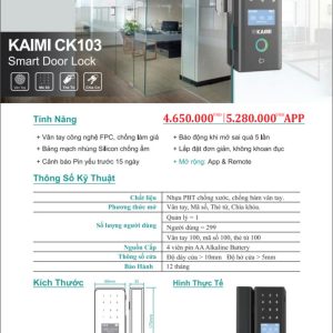 - Tính năng: Vân tay, mã số, thẻ từ, chìa cơ, App trên điện thoại