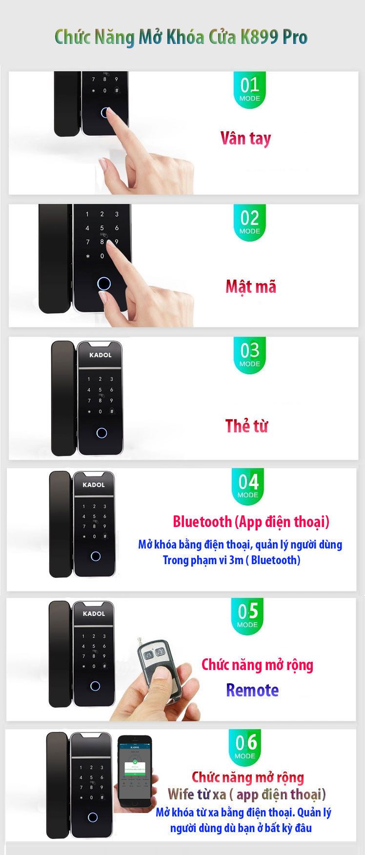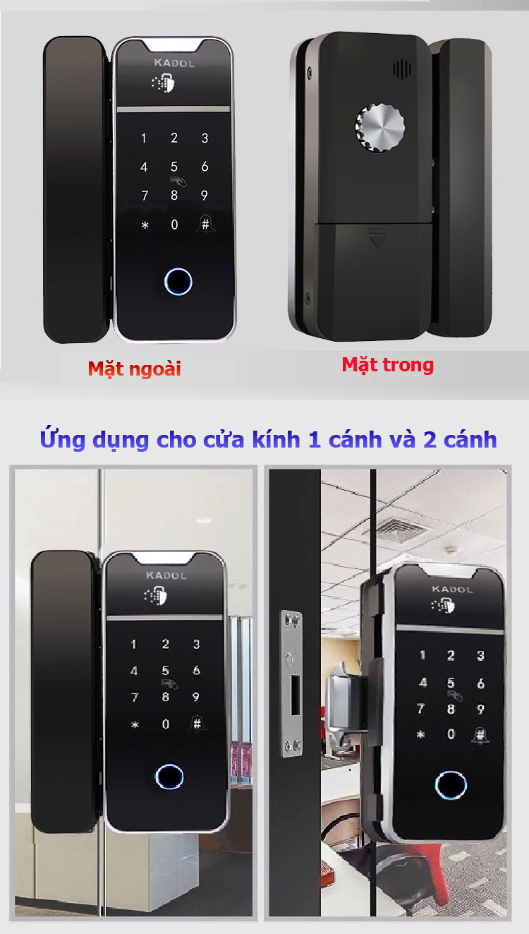 - LẮP ĐẶT SIÊU ĐƠN GIẢN– SIÊU NHANH – SIÊU AN TOÀN– Khóa vân tay cửa kính Kadol K899 pro lắp đặt vô cùng đơn giản: