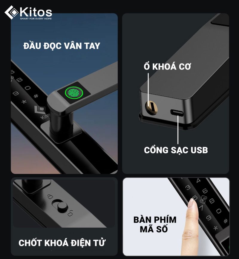 Khoá vân tay cửa nhôm Kitos KT-AL630 Plus