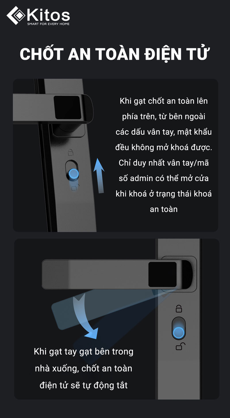 ►Phương thức mở khóa : vân tay, thẻ từ, mã số, chìa khóa cơ, app wifi mở từ xa trên điện thoại