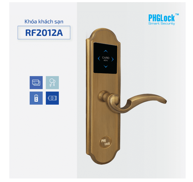 PHGLOCK RF2012A là dòng khóa cửa thẻ từ khách sạn thuộc PHGLock, với công nghệ tiên tiến đến từ AUSTRALIA. RF2012A là một trong nhưng mẫu khoá có thiết kế đơn giản nhưng không kém phần sang trọng và đẳng cấp.